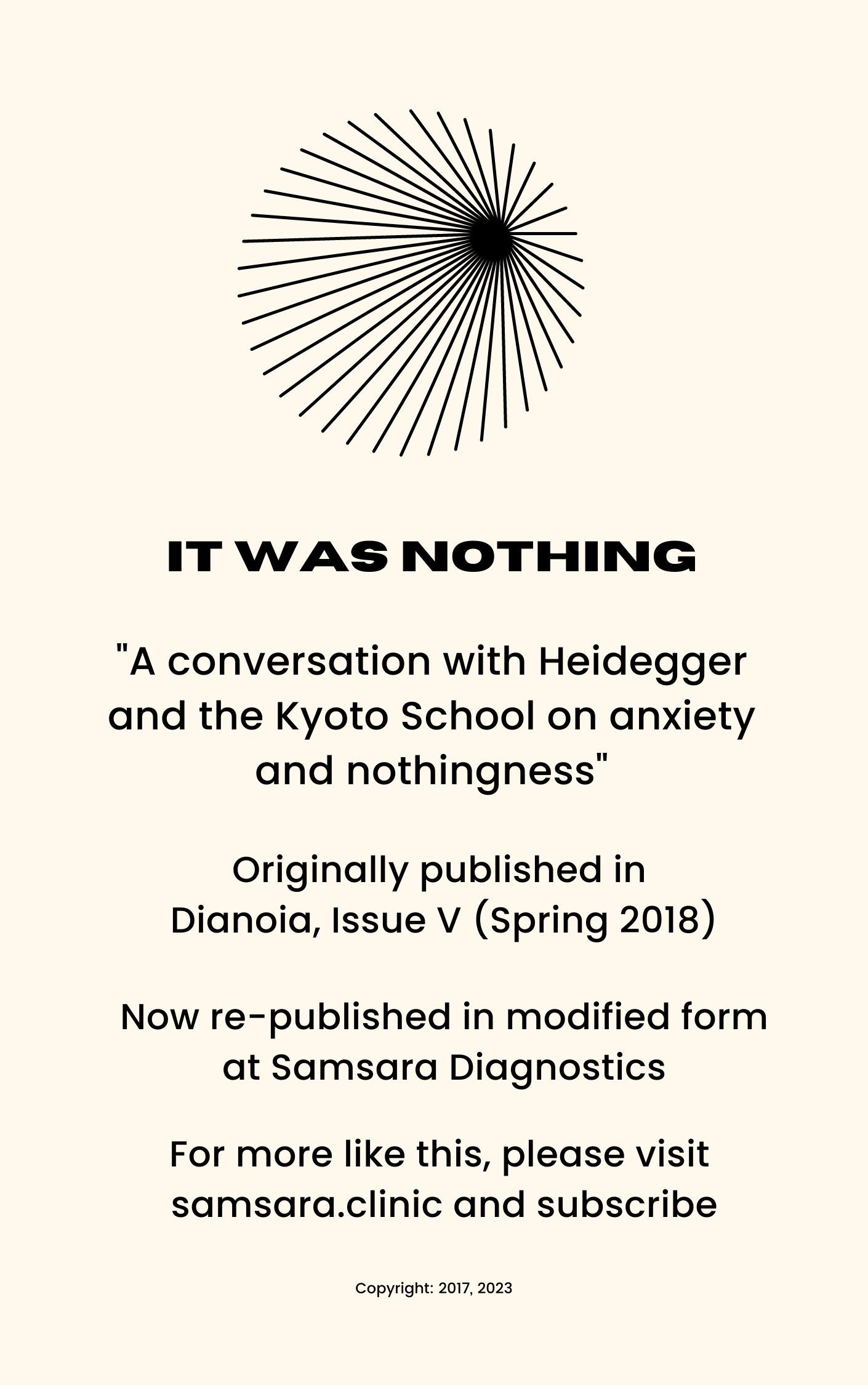 If you're interesting in Martin Heidegger, nothingness, hermeneutics, Buddhism, the Kyoto School, Nishitani Keiji, philosophical anthropology, or inter-religious dialogue, then this piece will have something to stimulate your reflection.